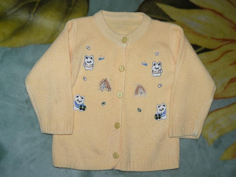 Теплая кофта. Приятная к телу, не колется. В хорошем состоянии. Рост - ориентируйтесь по замерам. Длина рукава от плеча - 30 см, ОГ - 32 см, длина - 38 см.