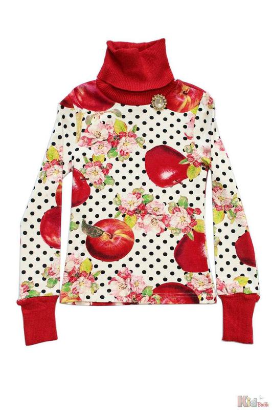 Приймаємо оплату карткою "Пакунок малюка". Красивый гольф для девочки. Украшением данной модели является красочный принт ввиде и яблоки с цветами. Горловина и манжеты на рукавах трикотажные. В такой моделеке Вашей девочке будет тепло и комфортно.