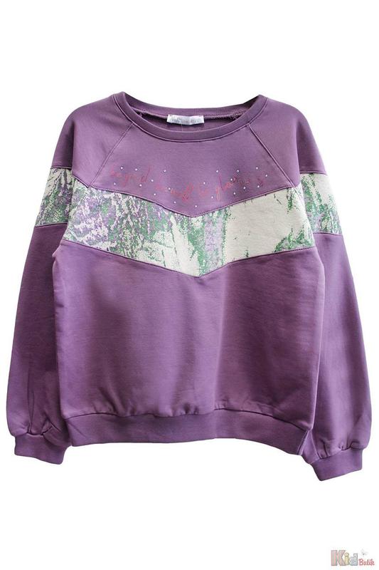 Приймаємо оплату карткою "Пакунок малюка". Свитшот фиолетового цвета для девочки. Спереди он украшен вставкой другуй окраски, что выглядит достаточно интересно. Модель имеет приспущены рукава на манжетах.
