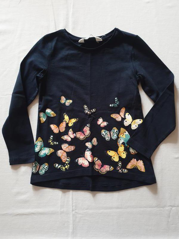 Темно-синій дитячий реглан H&M з яскравими метеликами. Подовжений ззаду. З натуральної тканини.