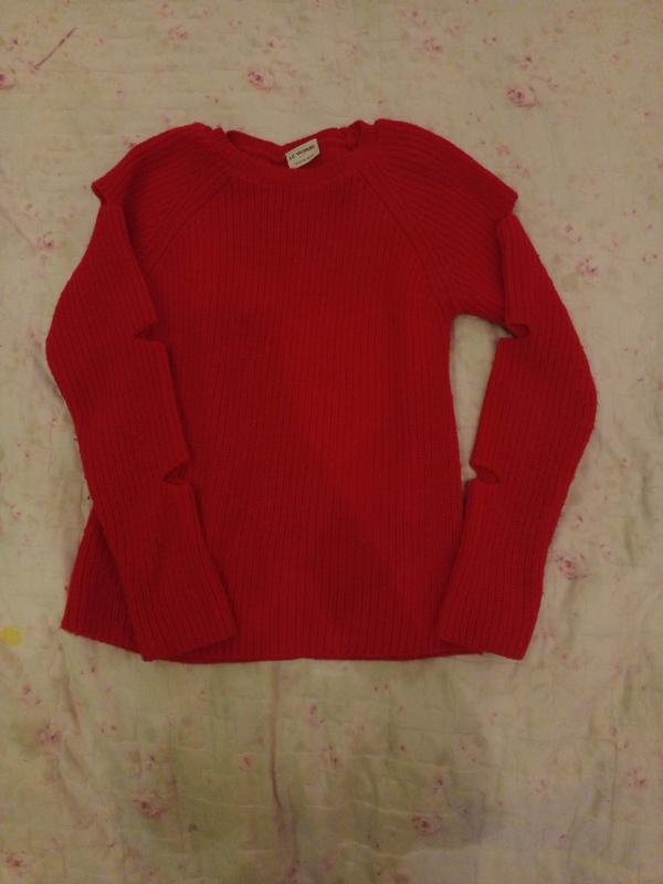 Червона ковтинка з дирками побоках , неколючати гарно на тілі сидить розмір 13-14 ,160 але підійде на 9-12 рочків