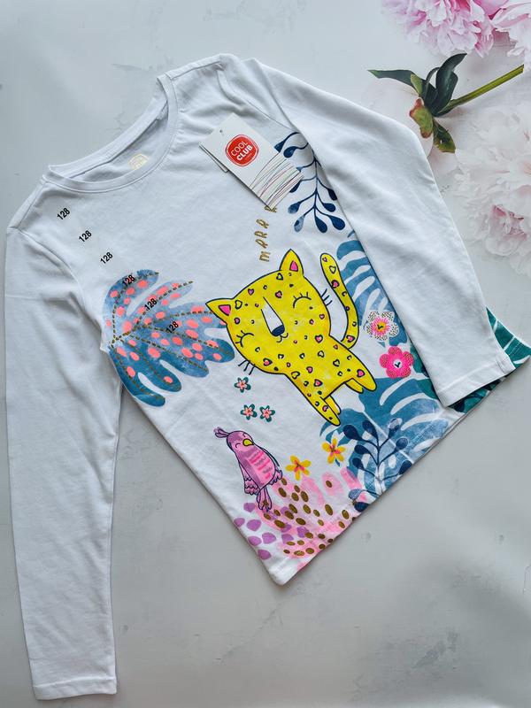 Дуже ніжна, приємна кофтинка з яскравим стильним принтом. Відмінна якість, гарний склад. Розмір: 128 (від 92-140 см).