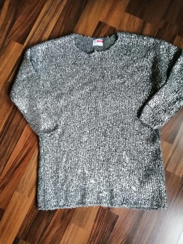 Свитер туника на девочку 5-6 лет (110-116 см), с серебристм напылением, одет пару раз, состояние нового