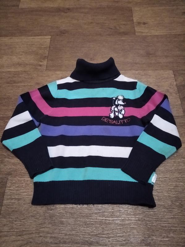 Безкоштовно (1 грн) при покупці від 99 грн Якщо вас зацікавила саме ця модель, то повідомте мені, якщо можливість придбати її окремо Светр в різнокольорову смужку Спереду нашивки зі стразами На зростання 108 см На рукавах є плями можна вивести За всіма додатковими питаннями звертайтеся в будь-який час