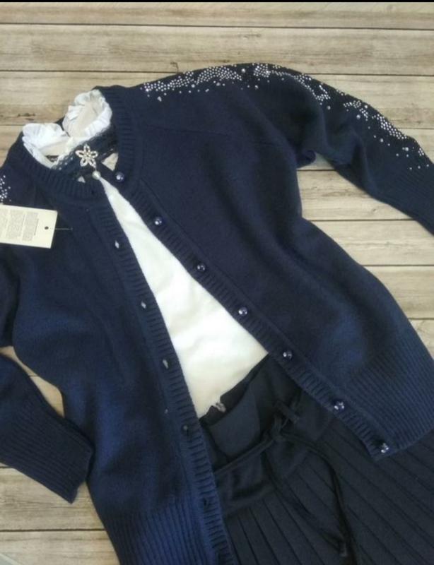 Кофточка в синем цвете,на пуговках, на рукавчике орнамент со стразиками. Состав: 30%шерсть,70%акрил на 5-6,9-10,11-12 лет УСЛОВИЯ ПОКУПКИ. Возврата нет, обмен возможен на другой размер,если такой есть, или другой товар,пересылки за счет покупателя. Бронь ставлю только для оплаты, прежде чем поставить ее,подумайте,нужна вам вещь или нет