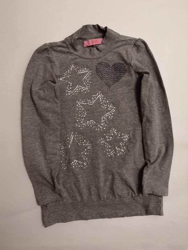 Кофта OVS на 4-5 лет. Удлинённая. Цвет серый. В составе ткани: 70% хлопок, 19% вискоза, 5% элистан. Длина по средине спинки 48 см, длина по боковому шву од подмышки вниз 34 см, плечи 23 см, рукавчик от плеча 41 см, полуобхват груди 31 см.