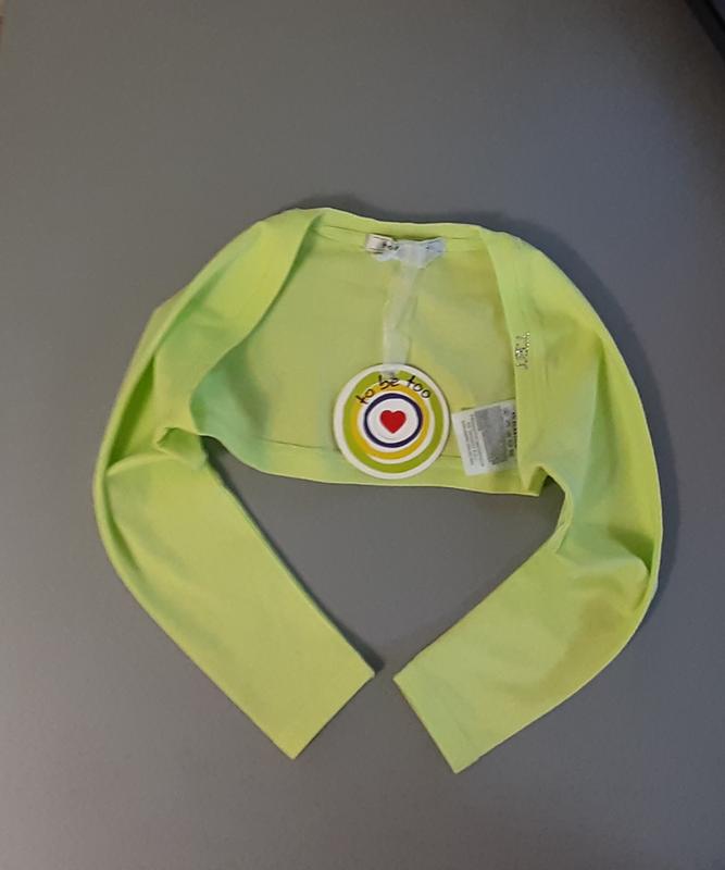 💚 Классное трикотажное болеро от известного итальянского бренда To be Too. Без застежек. 👉Есть небольшая эмблема бренда, выложенная стразиками. Цвет: нежносалатный Размер по бирке 24 (на рост примерно 98-110 - ориентируйтесь по замерам): •длина по спинке - 17 см; •длина рукава от краешка ворота - 42 см, от подмышки - 29 см. Состав: 94% хлопок, 6% эластан