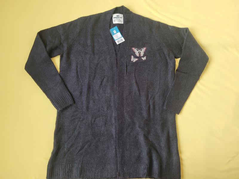 Кардиган Pepperts 146-152 см, 10-12 років. Прикрашають невеликі метелики. Чорний колір.