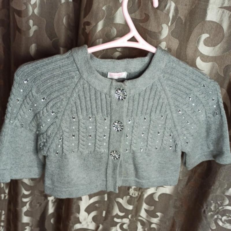 Прекрасный болеро для девочки от 5-8 лет, состав 95% хлопок 5% спандекс. украшен камушками. носили на выпускной садика и на свадьбу...