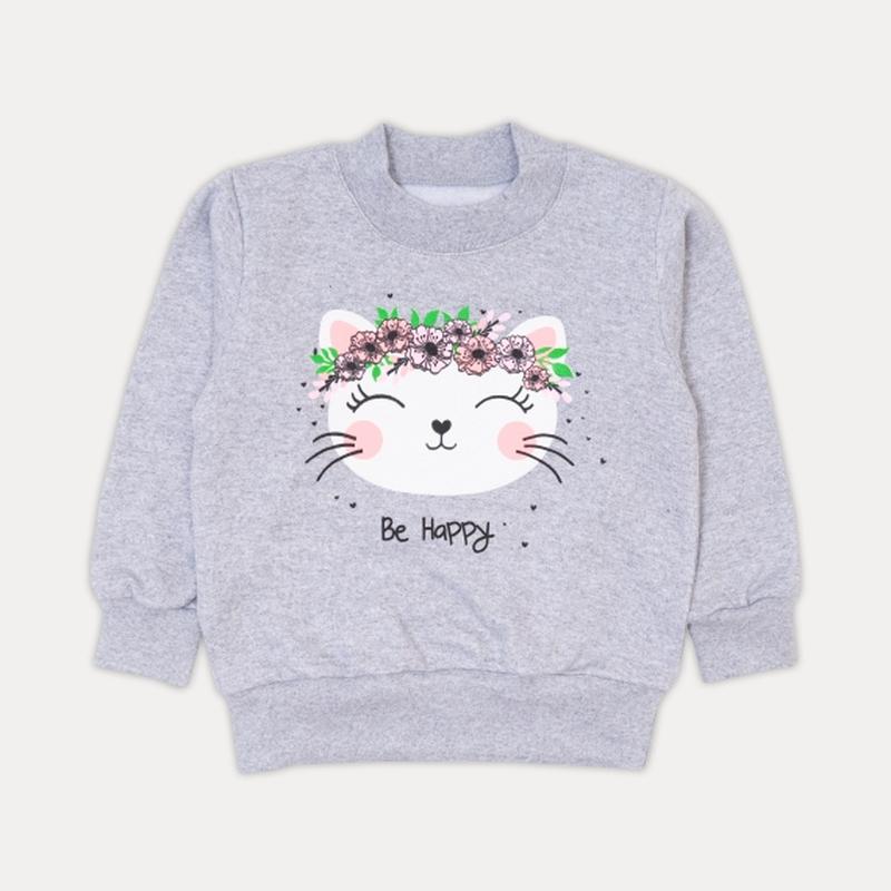 Джемпер выполнен в сером цвете. Модель пошита из футера, 100 хлопка. Замеры: Рост 110см(5лет):Длина-43см,Ширина по груди-33см,Рукав от плеча-36см