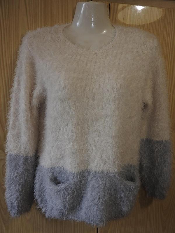 Nucleo кофта-травка для девочки-подростка. Можно и на взрослый S. Спереди с 2 карманами. Сверху цвет молочный, снизу серый. Размер L подростковый (152 см, 12 лет), возможно и на взрослый XS-S длина изделия 60 см длина рукава 57 см ширина плечей 40 см ПОГ 42 см Состояние идеальное.