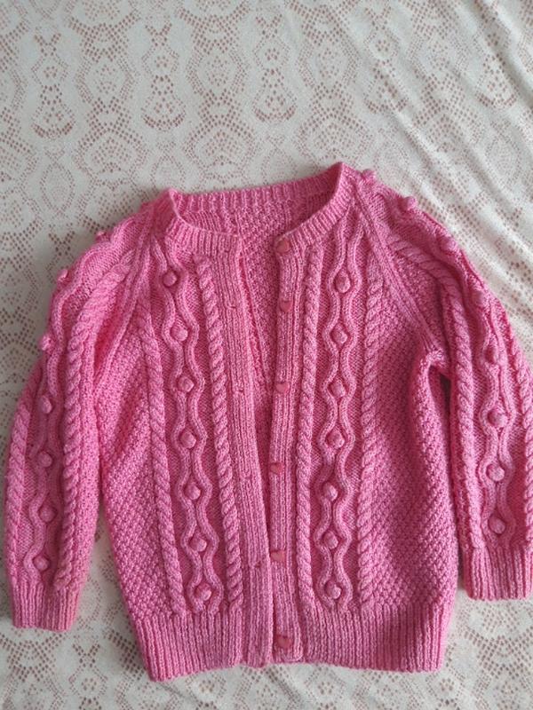 Улюблений кардиган красивої в'язки і гудзики сердечки. Без дефектів довжина 43 ширина під рукавами 35 рукав від горловини 43