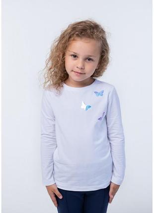Кофта для девочки белая с аппликацией "бабочки" Размер : 98 см (3 года) Сезон весна,лето,осень,зима,школа,садик Цвет : белий Ткань : стрейч-кулир Состав тканини : 95% хлопок, 5% эластан Длина по спинке 39 см ,длина рукава от плеча 32 см , ширина под мышками 30 см