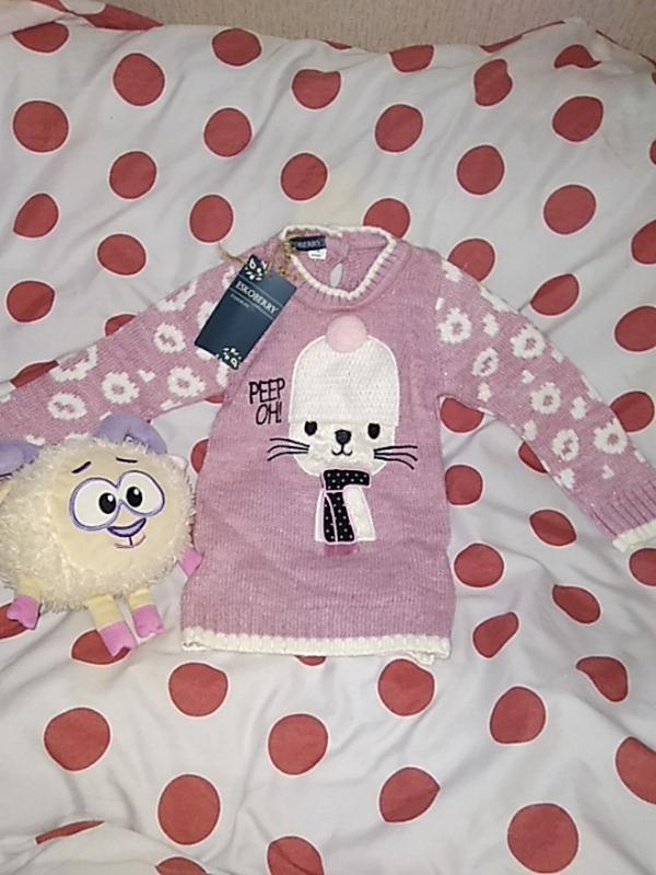 Нарядная тёплая кофточка для девочки 1- 2 года, длина -36, ширина-25, рукава-34, очень мягкий.