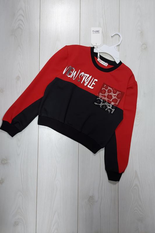 Стильный укороченный свитшот от турецкой фирмы "BERMINI". Склад: 95%-котон; 5%-еластан. Размер в наличии: 11р./146см.рост. плечи-39см. рукав от плеча-51см. длина-41/44см. ПОГ-44см.