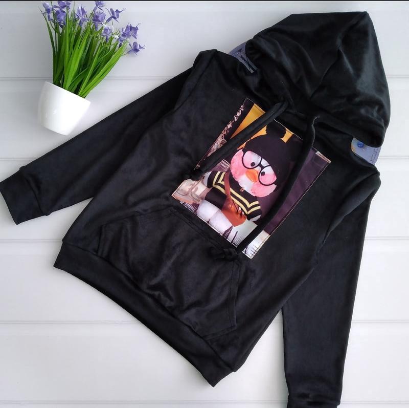 390 грн Весенний худи с любимой нашивкой Уточка Лалафанфан ⭐Ткань : велюр ⭐Цвет: черный ⭐Дополнительно: рисунок нашивка/карман кигуруми ⭐Производитель Украина ЗАМЕРЫ РУКАВА И ДЛИНЫ ОТ ГОРЛОВИНЫ р.134-длина от горловины 50 см /ПОГ 40 см/рукав 56 см-1шт р.146-длина от горловины 54 см /ПОГ 41 см/рукав 58 см-2шт р.152-длина от горловины 58 см /ПОГ 42 см/рукав 61 см-2шт р.158-длина от горловины 59 см /ПОГ 45 см/рукав 64 см-2шт