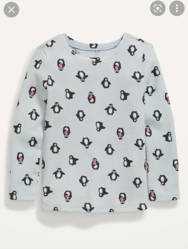 Термо лонгслив Old navy для девочки. Мягкая вафельная ткань, приятная к телу. Рисунок смешные пингвинчики. Склад 100%бавовна