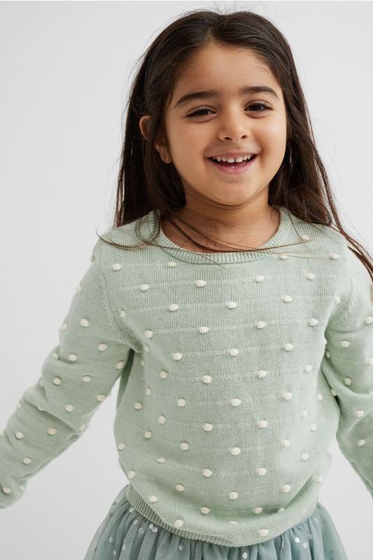 H&M Джемпер из мягкого хлопка фактурной вязки. С длинными рукавами-фонариками и резинкой по вырезу горловины, рукавам и нижнему краю. 🏷️98-104 🏷️134-140 📌98-104 Длина 38, плечи 27, рукав 39, грудь 32 📌134-140 Длина 50,5, плечи 31, рукав 51,5, грудь 38 🛍️ОТПРАВЛЯЮ 2-РАЗА В ДЕНЬ 🚀НОВАЯ и 🚜УКР 💵ПОСЛЕ ПОЛНОЙ ОПЛАТЫ 🍿ТОРГА НЕТ