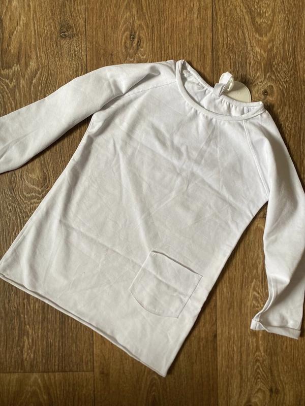 Белая Длинна 44 см Подмышки 31 см Длинна рукава 38 см Тянется Коттон , мягкая Возраст указан 2-4 года