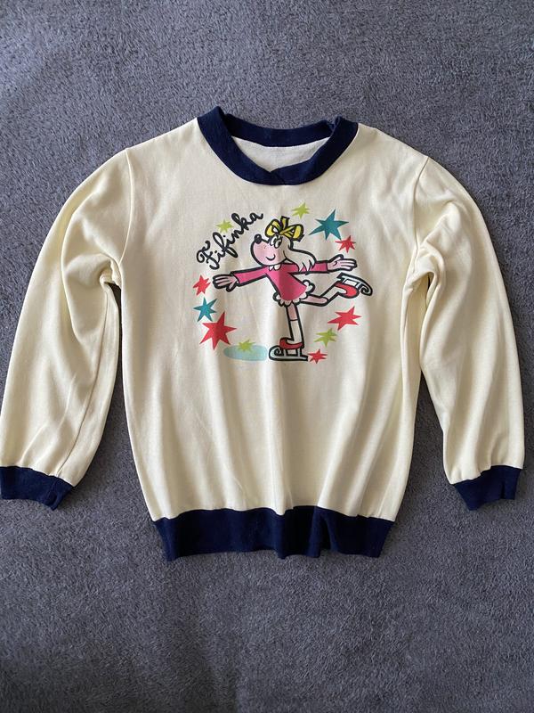 Фото на теле нет Фасон свободный-свитшот Впереди рисунок Рукава длинные на них манжеты средней ширины в рубчик Снизу манжета средней ширины Тянется Плотность средняя Бирки срезаны подойдёт на 6-8 лет ориентируйтесь по замерам В составе коттон полиэстер Длина 48,5 см) Плечи 34,5 см) Рукав 43 см) Пог 42 см) Пот 40,7 см ) Снизу 37 см)