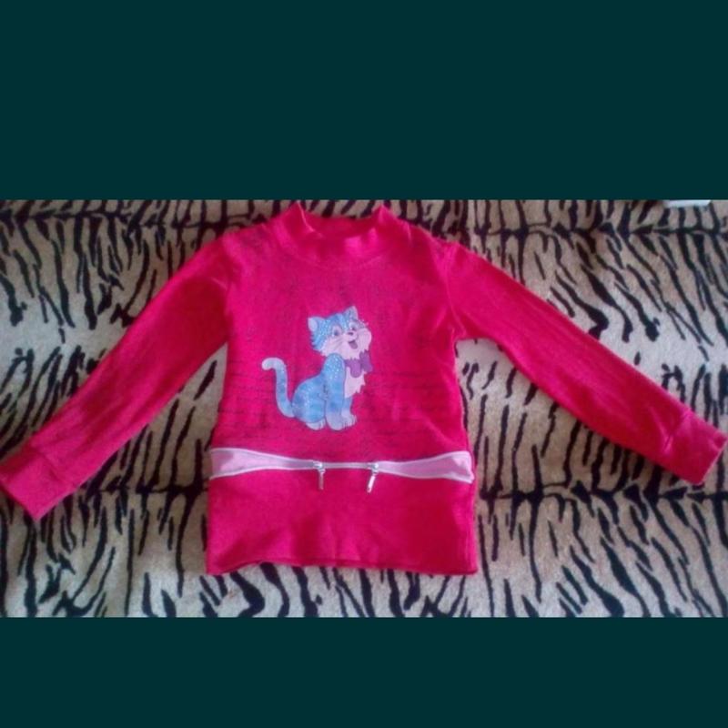 Кофточка малинового кольору з рукавами. Розмір 104 см, на вік 4 роки . Цікава модель. Довжина 39 см, в грудях 27 см, в рукаві 35 см .