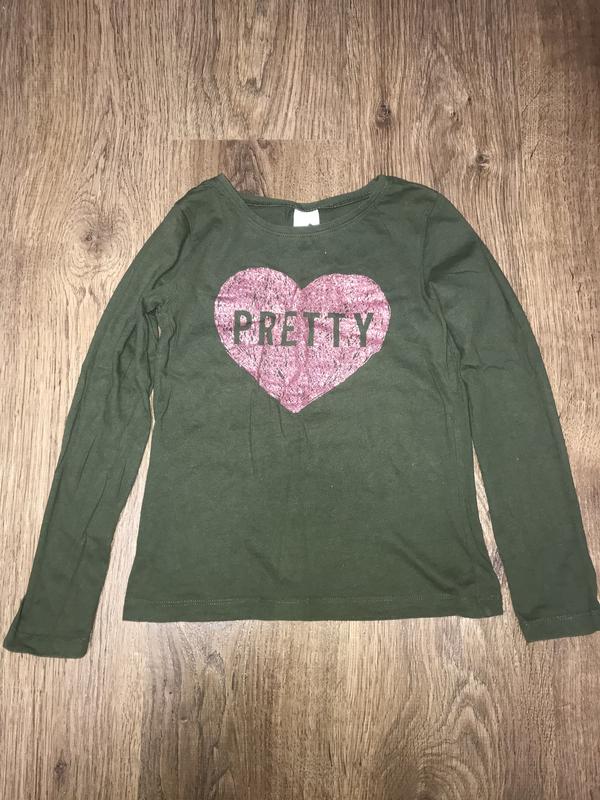 Стильный лонгслив для девочки с принтом сердце. Состав 100% хлопок. Состояние идеальное