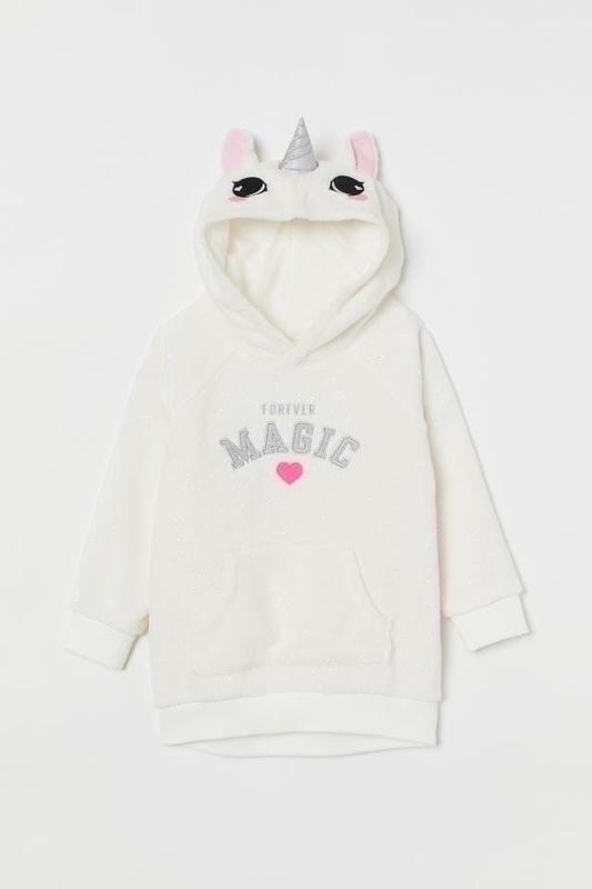 Худи для девочки , с единорогом . Состояние отличное ! Ткань плюшевая с блёстками , в капюшоне внутри подкладка , хлопковая . Манжетики в отличном состоянии , кофта выглядит как новая !
