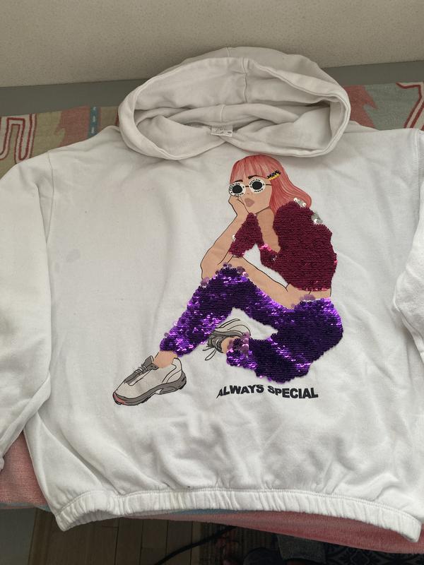 Свитер на девочку 11-12 лет рост 152 см. Белый с модным рисунком.