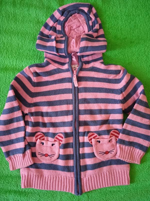 Теплая кофта с капюшоном без видимых нюансов, немного цвет выстирался не такой яркий. Замок рабочий