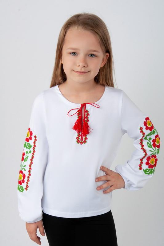 р86-239грн р92-279грн р98-319грн р104-328грн р110-339грн р116-349грн р122-349грн Чарівна вишиванка для дівчаток з пишними рукавами, виготовлена із високоякісного полотна "Стрейч-кулір піньє " - еластичне та приємне до тіла, гарно сідає по фігурі. Родзинка даної моделі - це цікавий вишитий узор та об'ємні рукава знизу призібрані на резинці. Вишиванка відмінно комбінується зі спідницею або штанами та стане доповненням будь-якого святкового чи урочистого образу. Полотно: стрейч-кулір піньє Склад: 95% бавовна, 5% еластан Рекомендації з догляду: прати при температурі не більше 30°C. Допускається прання у режимі "ручне" або "делікатне", вишивку прасувати тільки по виворотній стороні.