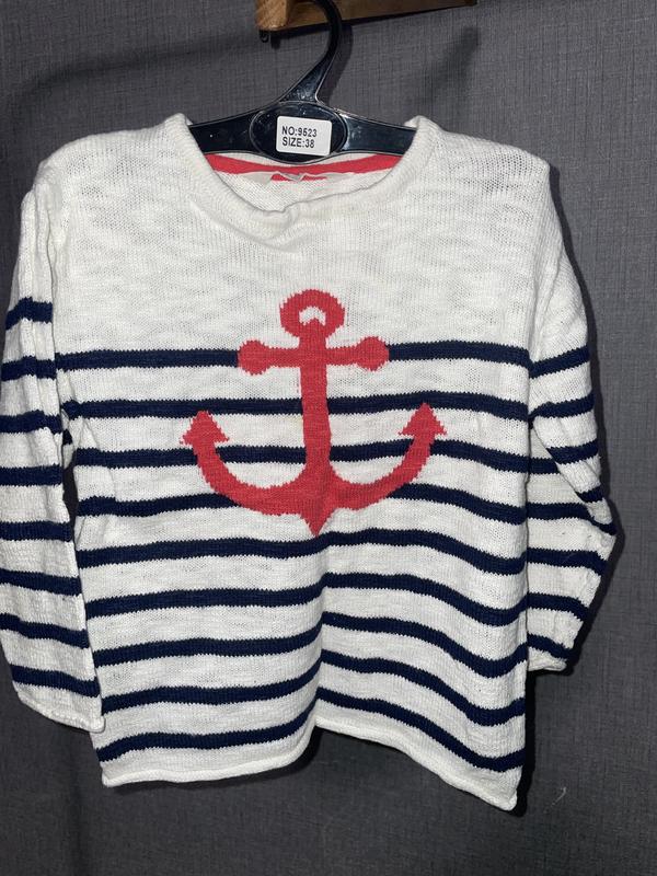 Великолепный Реглан с якорем, машинная вязка По наборке 98-104см,2-4роки Замеры: длина-40см,рукав-33см,напов обхват-35см