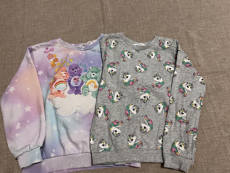 Регланы на возраст 6-8 лет. В очень хорошем состоянии. Фиолетовый имеет легкое байковое утепление. Приятные на ощупь. Свитшот с единорогом без утепления. Цена за два лонгслива 170 грн.