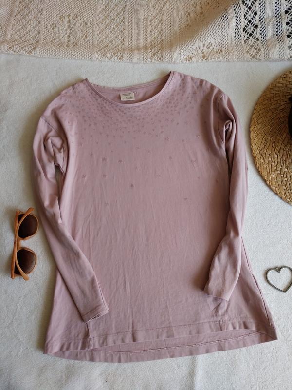 реглан нежно-розовый Zara звездочки 10 лет вилы с этикетку явно 12 под мышки 40-47 линия плеч спущена 43 рука от плечевого шваха 44,5 на спинке вдвоет на фото заборкой 100% хлопок