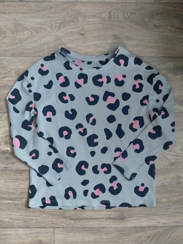 Длинная кофта с розовым леопардовым принтом, выполненная из хлопка. Длинные рукава. Стильный и комфортный вариант для создания яркого образа. Рост 128 см, длина рукава 37 см. Почти новая.