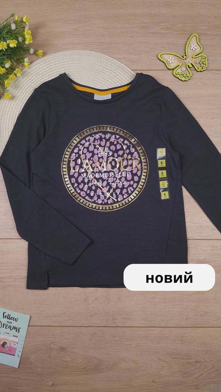 Новый детский реглан лонгслив 7-8 лет кофта футболка с длинным рукавом для девочки