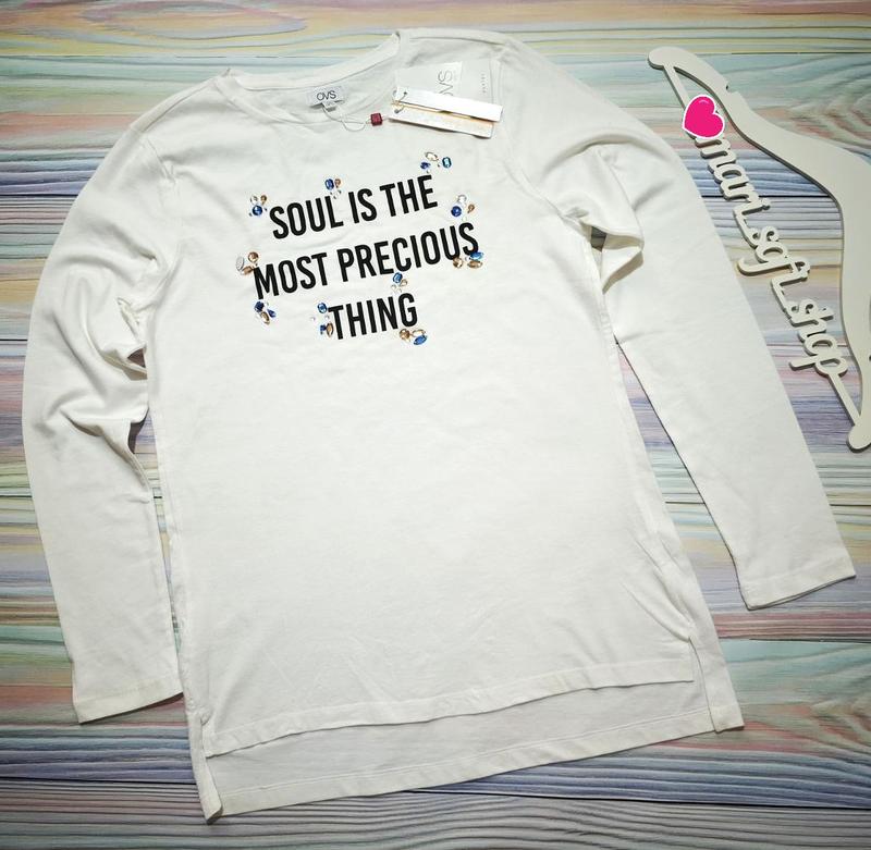 Белый реглан с принтом надписи и блестящими камнями от OVS в размере 14-15 лет (с19). 100% бавовна. Спинка удлинена. Замеры: длина 62-68, ширина 43,5, рукав 60,5. При покупке трех товаров - укрошта в подарок!