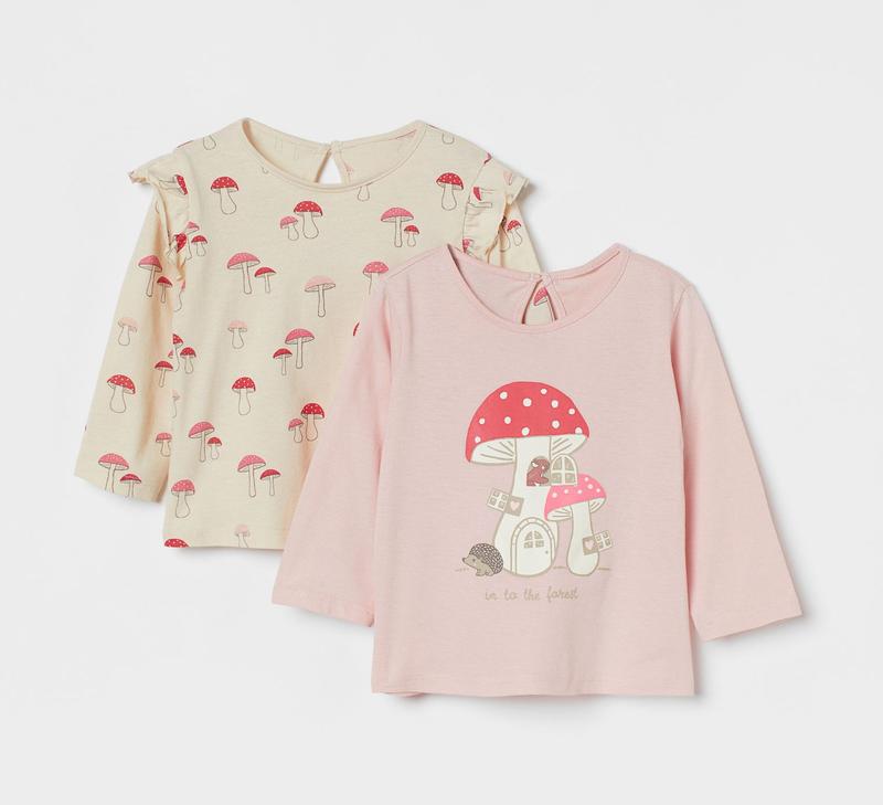 Набор детских кофт лонгсливов на девочку. Кофты из мягкого хлопка. Модель с круглым вырезом горловины и небольшим разрезом с пуговицей на шее сзади. H&M. Ціна за набір р.98 - 2-3 года: рукав от плеча 33, длина 40, ширина груди 30