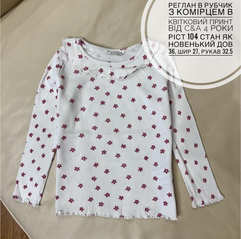 Реглан, лонгслів кофта в рубчик в квітковий принт на дівчинку 4 роки ріст 104
