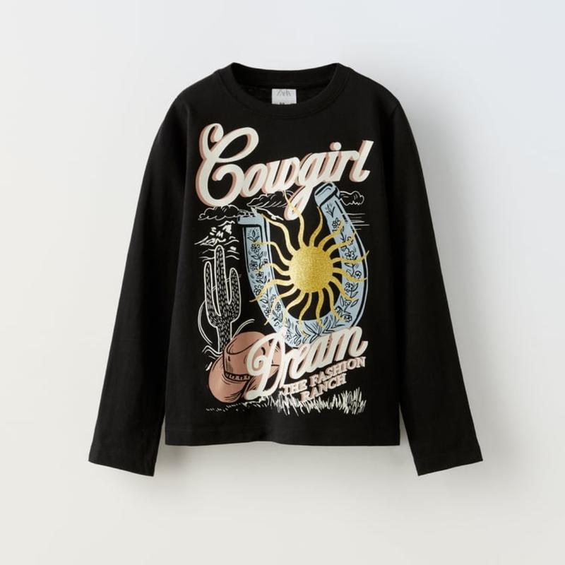Лонг чорного кольору з контрастним принтом від бренду Zara Доступно до замовлення в розмірах 📌152 11-12 років Ширина між рукавами 40 Довжина по спині 54 Довжина рукава від горловини 62 📌140 9-10 років Ширина між рукавами 37 Довжина по спині 49 Довжина рукава від горловини 57