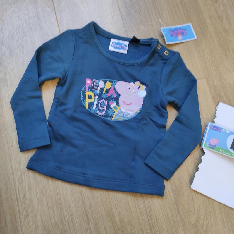 Термокофта Peppa pig со свинкой пепой. Цвет красивый, насыщенный бутилочный. Ширина под руками 25 см и тянется до 32 см, длина около 33 см, длина рукава от плеча 29,5 см.