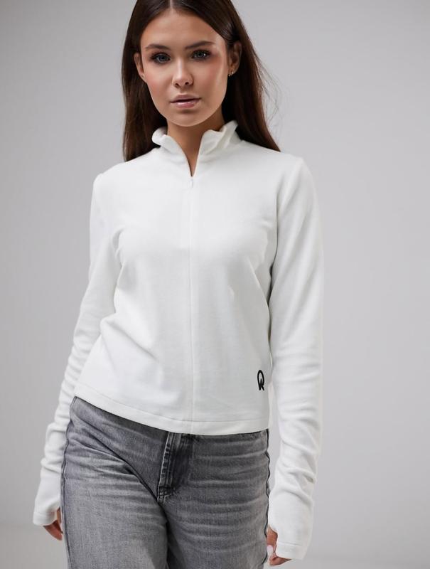через кнопку купить только полная оплата!!! Слім лонг Молния до груди. Есть вырез для пальчика. Цвет - молочный. Ткань - микрофлис, термотрикотаж Пума. Замеры: 152-длина - 49см, полуобхват груди - 38см, рукав от плеча - 62см мс.