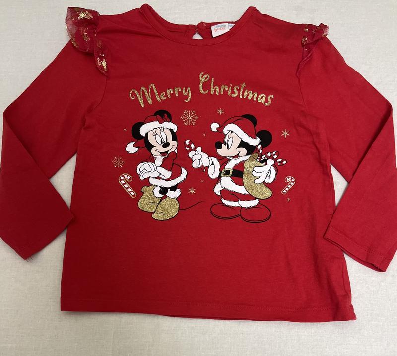 Лонгслів кофта реглан новорічна на дівчинку дісней мінні маус водолазка