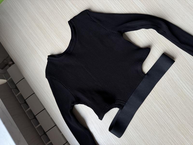 Вкорочений лонгслів з резинкою на поясі від бренду Smil. Вказаний розмір 158, орієнтуєтесь на заміри будь ласка. Довжина від плеча до низу 34 см, плече 7 см, довжина рукава від плеча 59 см. Є доставка Нова пошта і Укрпошта.