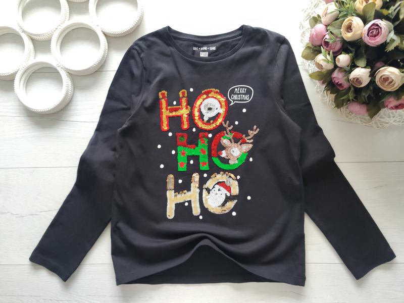 9,10 лет, рост 140 новогодний реглан с оленем в пайетках артикул: 25502 бренд: f&f (эф...
