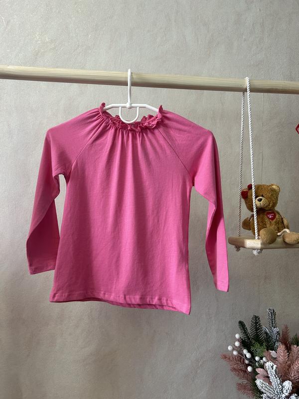 Реглан для дівчинки OVS Рожевого кольору 🩷 Ідеально підходить на всі сезони ☺️ Дуже приємний до тіла 🫶 Комір-стійкою з рюшами та довгими рукавами Тканина коттон Вік 4-5 р. ( 110 см)