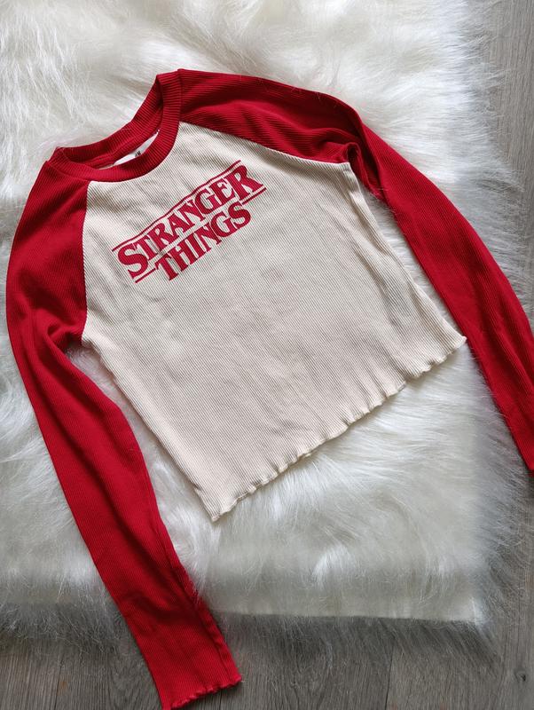 Мега актуальный топ-реглан Stranger Things от H&M Стан нового, не подобрал размер,бирку сняли, примеряли, но не носили. По наборке на 10-12 лет, рост 146-152 Длина 37 см рукав от горловины 60 см