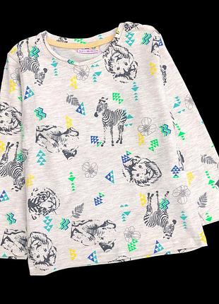 Реглан (лонгслив) для мальчика с принтом – это стильное детское изделие, которое легко подчеркнет индивидуальность маленького модника. Изготовлен из качественного материала (95% хлопок, 5% эластан), очень приятный к телу, красиво тянется, обеспечивая максимальный комфорт. Материал является абсолютно гипоаллергенным, безопасным для чувствительной кожи ребенка. Качественный материал и классический прямой крой делают этот лонгслив универсальным – его можно надевать как дома, так и на прогулку или в садик. Особую изюминку придает анималистичный принт, который добавит оригинальности в любой образ. Модель является базовой, что позволяет ее комбинировать с различными элементами гардероба. Подойдет на прохладное лето, или как поддева на демисезон и зиму.Для тех, кто ценит качество и комфорт, этот реглан станет незаменимым элементом одежды в детском гардеробе. Практичность, элегантность и удобство — именно то, что предлагает данный товар. Порадуйте своего маленького стилягу уникальным изделием. Замеры: 98-104 см (3-4 р): длина 42 см/рукав 37 см/обхват груди 62 см 110-116 см (5-6 р): длина 46 см/рукав 39 см/обхват груди 68 см