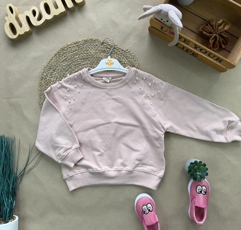 Удобный детский реглан или свитшот Турция. Тканина двунитка, намистини- спереду і ззаду. Универсальная вещь для садика, школы или прогулок! Размеры: 110 (по наборке 5)- рукав от горловины 43 / длина 39 116 (по бірці 6)- 45 / 40 122 (по бірці 7)- 46 / 41 128 (по бірці 8)- 48 / 44 Цена: 575 грн Крохпелька