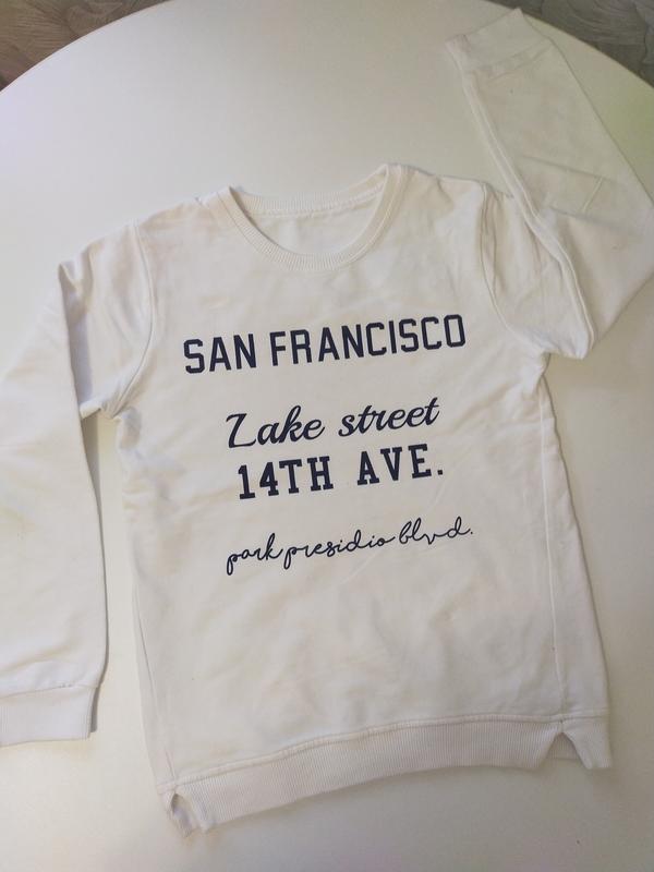 Реглан белый толстенький с надписью,стан идеален на 8-10 лет