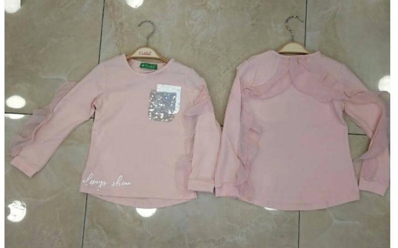 Дуже гарний нарядний реглан на дівчат ніжно рожевого кольору. Спереду є імітація карману прикрашена паєтками, рукава та спинка прикрашена шифоновими вставками. Дуже гарно виглядає вживу. Матеріал бавовна. Дуже приємний до тіла. Виробник Туреччина фірма Cichlid
